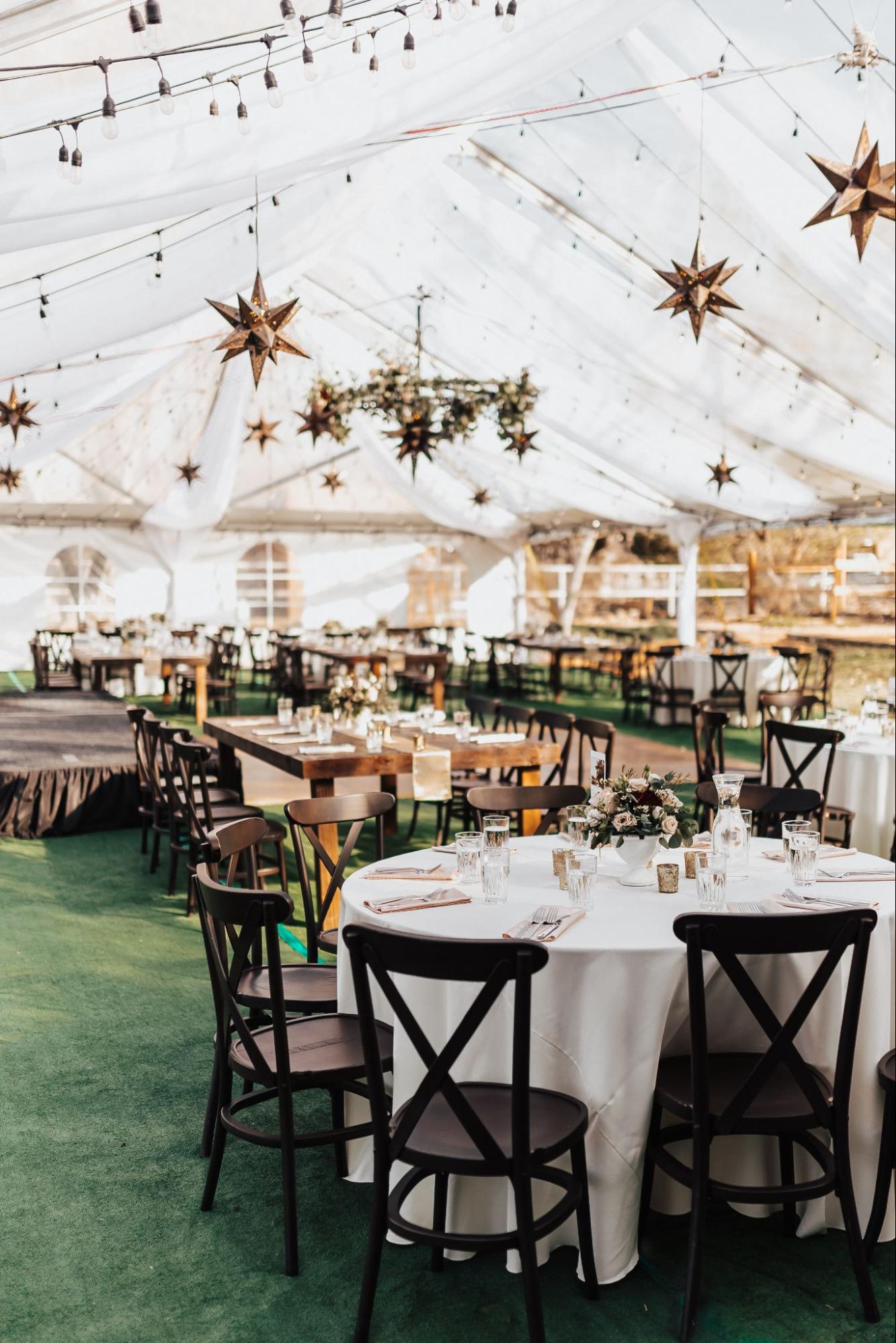 • Choose the Right Decor and Lighting: When hosting an outdoor wedding, your decor should enhance (not compete with) the natural beauty of the venue. Use elements like string lights, lanterns, and candles to create a warm ambiance as the sun sets. For seating, lightweight furniture or natural materials like wood blend beautifully with outdoor settings. Don’t forget to add pops of color with florals that complement the desert landscape. Pro Tip: desert blooms like succulents are as stunning as they are practical.