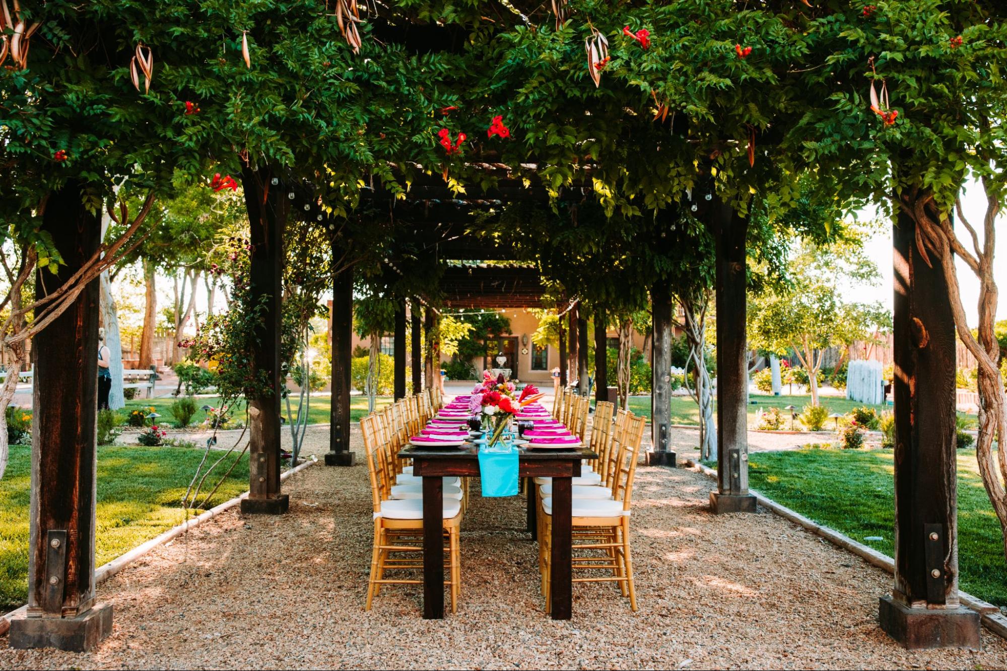 For couples looking for a venue that reflects their personal style and unique vision, Casa Perea Art Space is a hidden treasure. This historic adobe home-turned-art-gallery in Corrales (just outside Albuquerque) offers a charming outdoor setting with a rich cultural vibe.