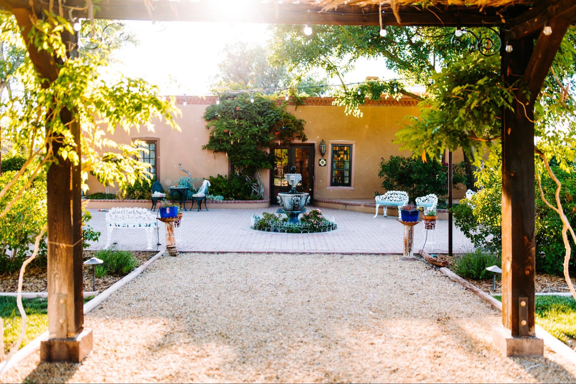 Lastly, tucked away in Old Town Albuquerque, Casa de Sueños (House of Dreams) is a charming boutique venue that lives up to its name. This adobe-style property offers multiple outdoor spaces. Including a tranquil garden courtyard that’s ideal for weddings.